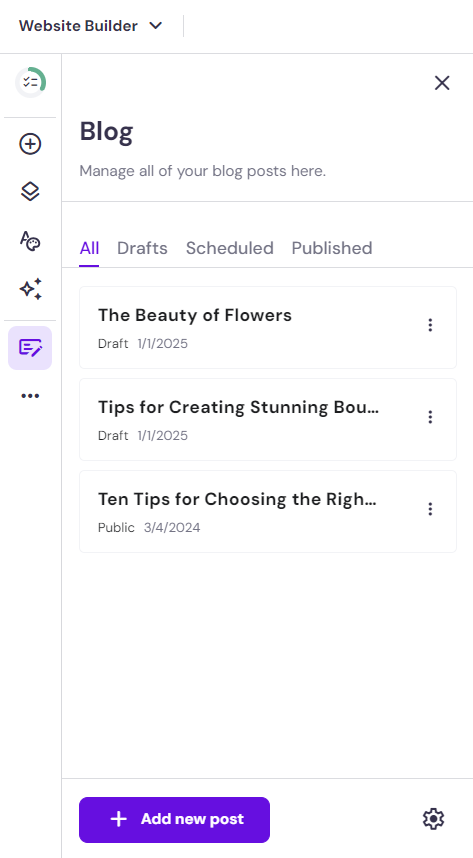 Dit zijn de stappen voor het toevoegen van een blog aan jouw website met behulp van Hostinger website bouwer:
