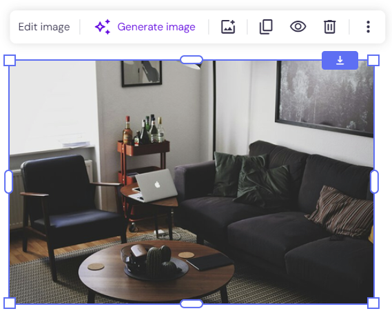 - Als je de afbeelding wilt wijzigen, selecteer je het afbeelding element en selecteer je Afbeelding bewerken in de werkbalk. Kies Afbeelding vervangen en verwissel deze vervolgens met een andere AI-afbeelding, die je al eerder hebt gegenereerd, of upload je eigen afbeelding. Je vindt alle AI-afbeeldingen in de mediabibliotheek.