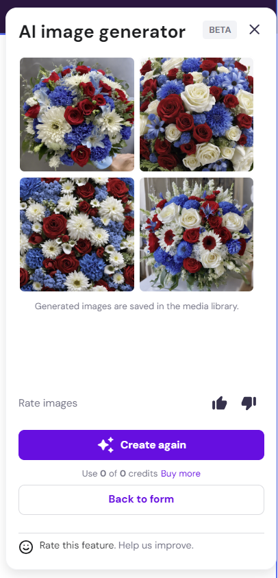 AI Writer en AI Afbeelding Generator zijn altijd toegankelijk via het menu AI-tools in de zijbalk. Standaard ontvang je bij deze optie vijf credits waarmee je gratis vijf afbeeldingen kunt genereren. Kies de optie Meer kopen als je meer credits wilt kopen. Bekijk onze handleiding over het maximaliseren van het gebruik van AI Afbeelding Generator.