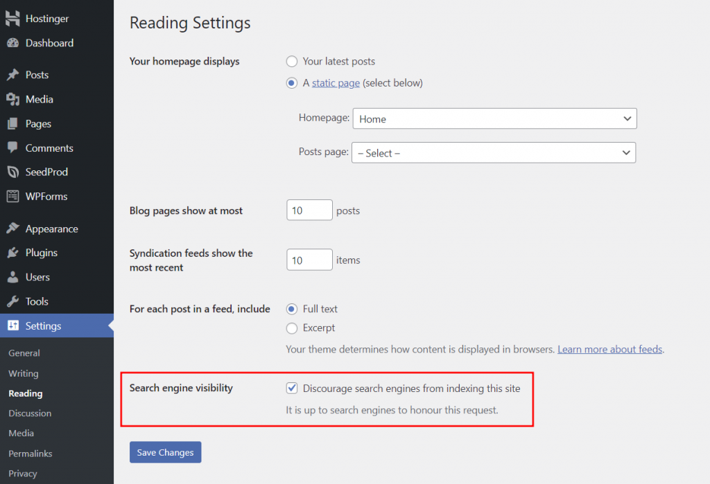Zodra je tevreden bent met je website, navigeer je naar Instellingen→Lezen en deselecteer je de optie Zoekmachine zichtbaarheid waardoor de site zichtbaar wordt in zoekresultaten.