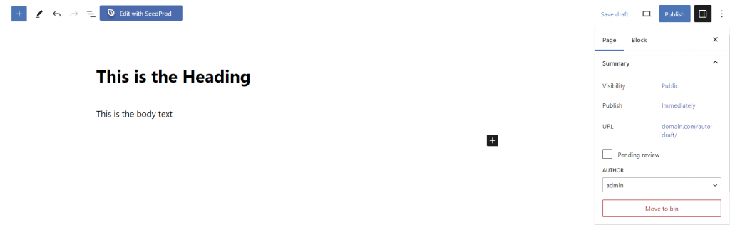 - Voeg de paginatitel en hoofdtekst toe aan de pagina-editor.
