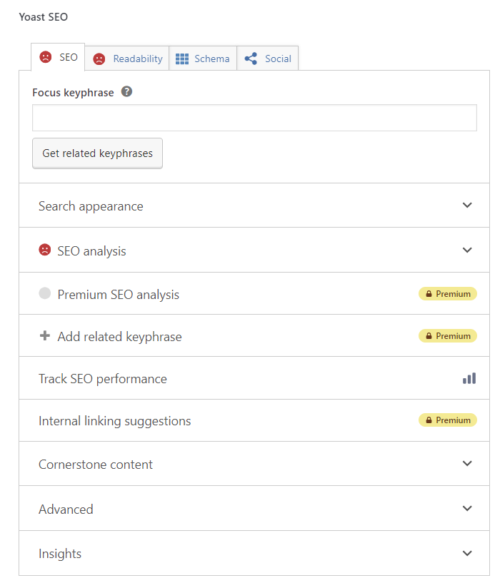 - Scroll in de editor van je bericht naar beneden, naar de Yoast SEO plug-in sectie.