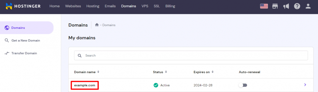 - Ga naar Domeinen en selecteer je domeinnaam.