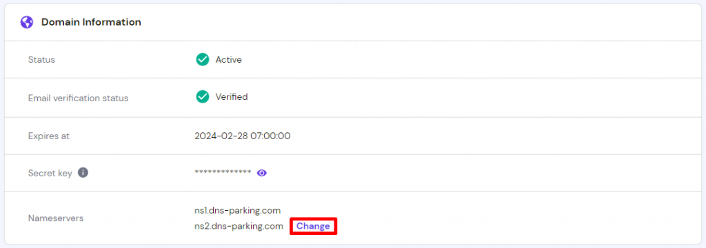 - Klik vervolgens op Wijzigen om naar de beheerpagina voor naamservers te gaan.