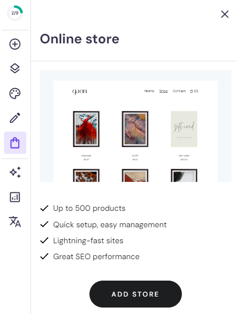 Door een webshop te beginnen, kun je producten direct aan klanten verkopen via je eigen website of via marktplaatsen zoals Etsy of eBay. Om het meeste uit deze optie te halen, kun je een e-commerce website bouwer gebruiken voor een snelle set-up en een professionele merkuitstraling.