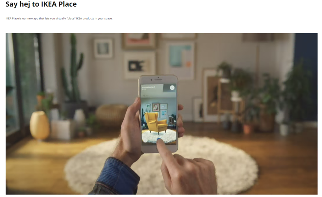 Met deze app kunnen gebruikers IKEA’s collectie van 2.000 producten verkennen, de gewenste optie selecteren en vervolgens kijken hoe het eruit zou zien in de door hen gekozen ruimte. Gebruikers kunnen producten ook rechtstreeks via de app kopen, wat de koopervaring een stuk eenvoudiger maakt.