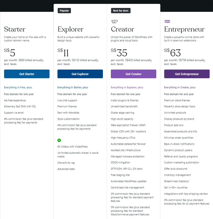 Hierdoor verschillen de kosten per platform. We beginnen met de prijzen van WordPress.org.