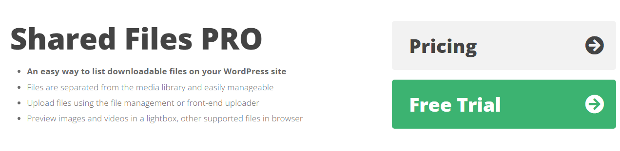 Shared Files is a download manager plugin that offers plenty of embedding options and a front-end file upload feature.