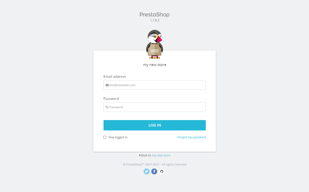 - Insert your Email and Password to log into your PrestaShop account and access your Dashboard.