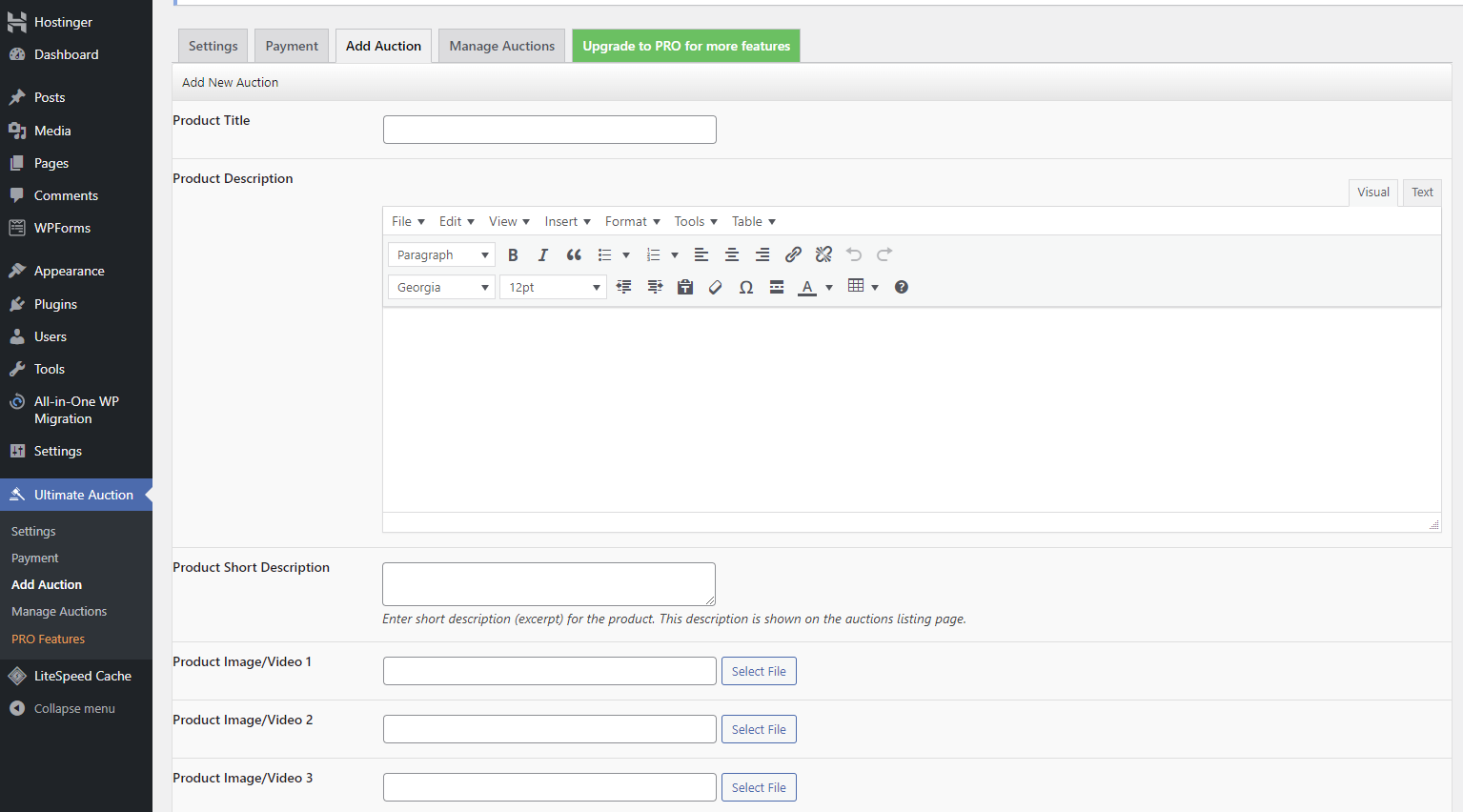 Now that we have explored the best WordPress auction plugins, let’s learn how to use them. This section will cover the steps of creating an auction website with Hostinger and the free version of Ultimate WordPress Auction Plugin.