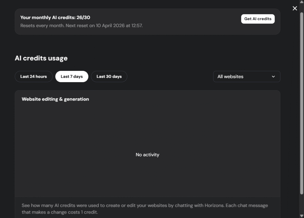 In order to have more credits and have more resources to address your Horizons tool, we recommend you to upgrade your Horizons plan 🚀