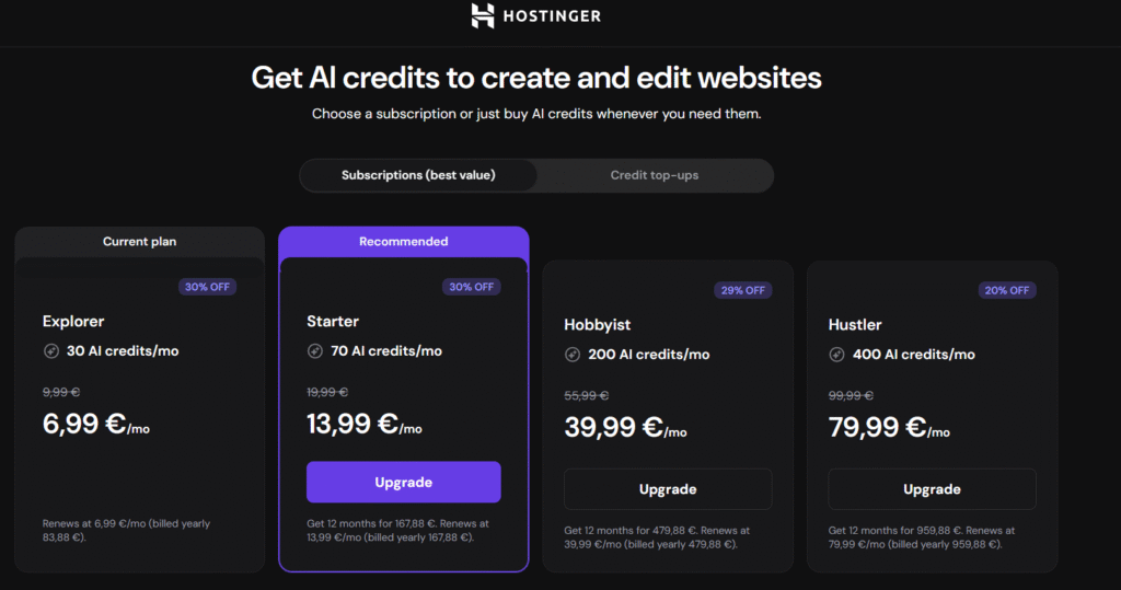 - You buy Starter for $10, use half the messages, and upgrade to Hustler for $20 → you get a $5 credit for unused messages and pay $15.