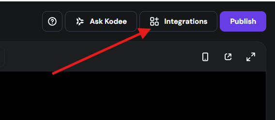 1. Click on the Integrations button that you see in the top right corner inside Horizons app: