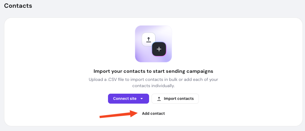 - If no contacts have been added yet, the option will appear below Connect site and Import contacts.