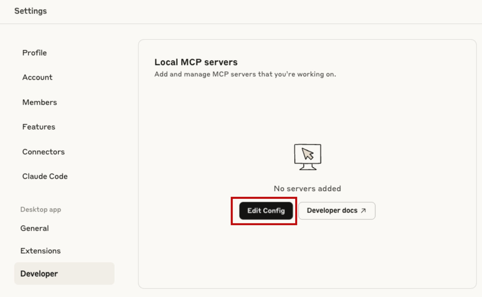 A great way to test the feature capabilities yourself is by integrating it with an AI tool like Claude Desktop. To begin, open the Claude Desktop settings and go to the Developer section. There, you will find an Edit Config option, which will open the claude_desktop_config.json file. You need to edit this file to add your Web2Agent website agent to Claude Desktop.