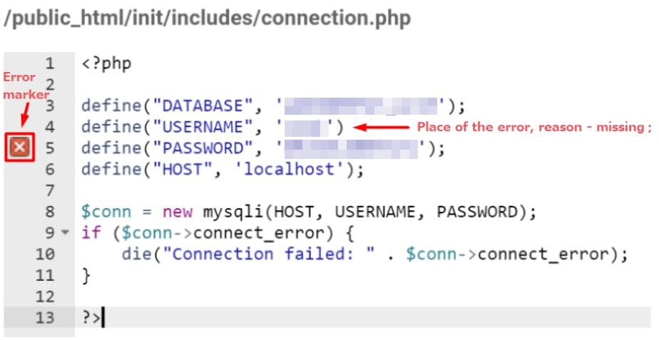 Parse error (Syntax Error): check the file mentioned in the error message for any syntax errors and edit the syntax
