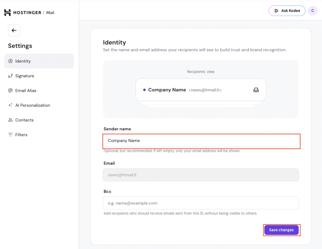 Adding a clear sender name builds trust and makes your emails look more professional. Recipients will see this name next to your email address in their inbox, helping them easily identify you as the sender.