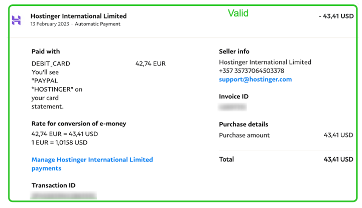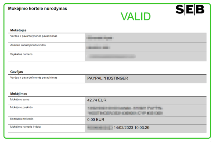 - Payment Receipt (mandatory) – Recent proof of payment for the purchase in Hostinger directly from the payment source, such as a bank statement, application.