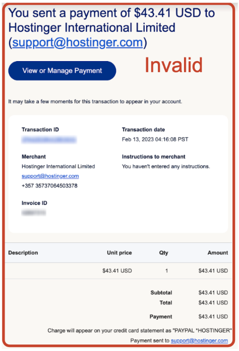 - Hostinger invoices or invoice screenshots