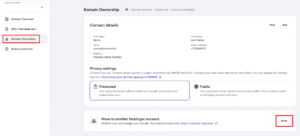If your domain is a Country-code top-level domain and is not .in or .co.uk, update the domain owner’s contact details first. They must identically match the contact details of the new Hostinger account.