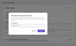 Moving a domain between Hostinger accounts will not move your website files, databases, emails, or other related services. Only the domain name is moved 💡