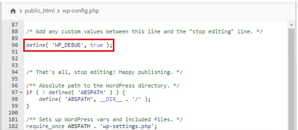 Below the line that enables WP_DEBUG. That’s it! Now all the errors will be logged in the debug.log file, located in your website’s wp-content folder.