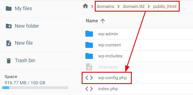 file. It will be located in domains/domain.tld/public_html, where domain.tld is your domain name: