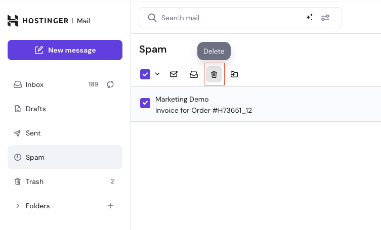 You can also delete emails immediately by clicking Delete while viewing messages in the Spam folder.