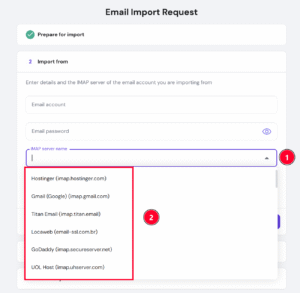 You can select the available IMAP server from the dropdown option: