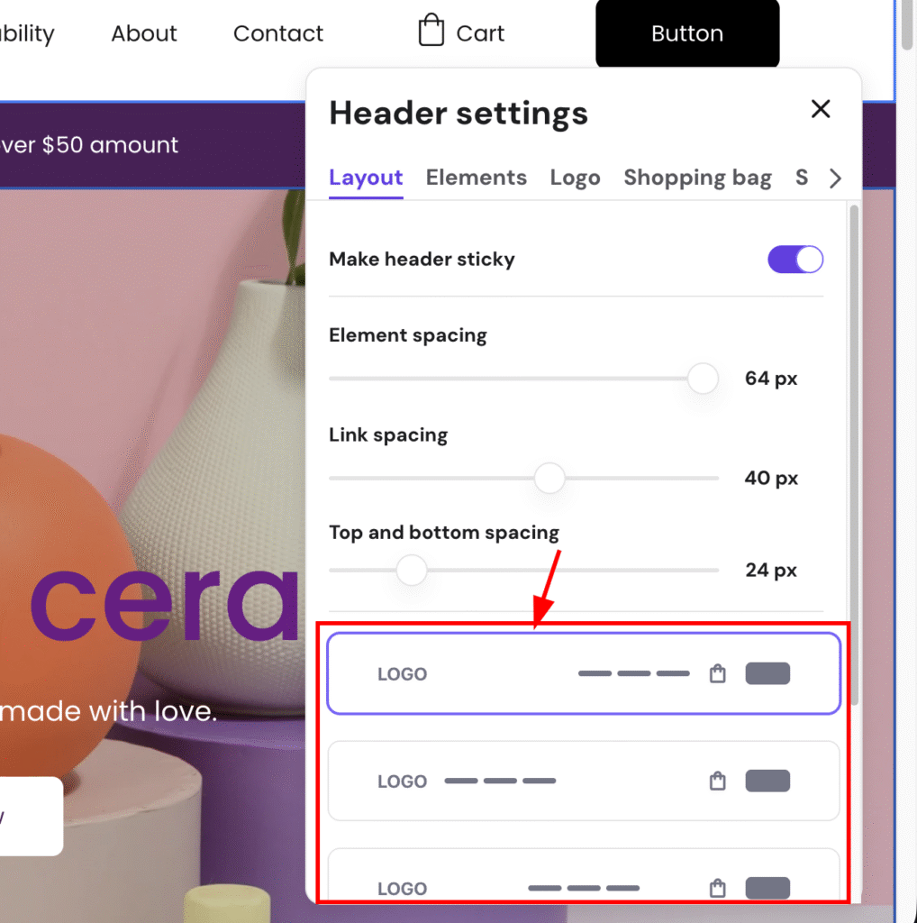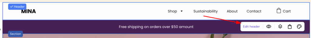 1. Within the builder, click on the header section and select Edit header