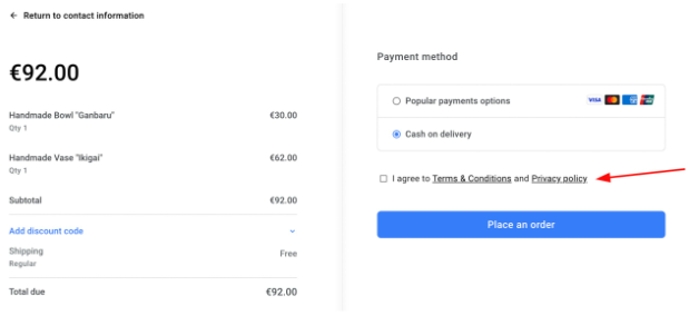 This way, your clients will be asked to agree with the policies before proceeding to payment in the checkout: