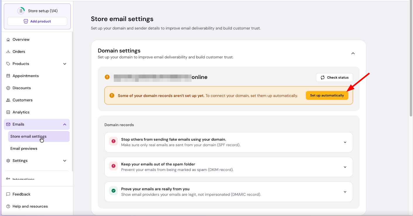 Before setting up a custom sender domain for transactional emails, your website must have a connected domain.