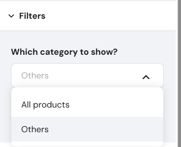 Click on the product list section and select Edit section. In the Filters tab, select a preferred product category to display:
