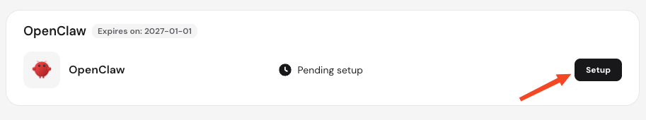 - Once deleted, you can create a new application from the OpenClaw main page on hPanel by clicking Setup.