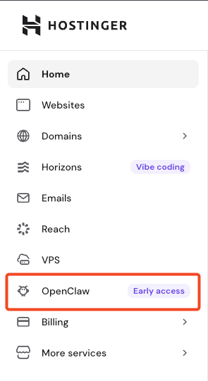 To access your management options, log in to hPanel and navigate to the OpenClaw section on the sidebar.