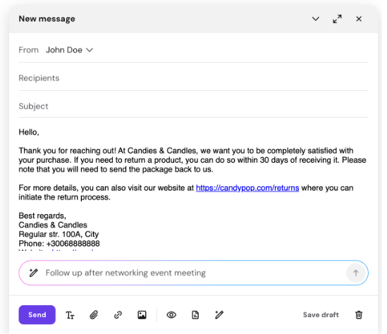 Use templates for replies, follow-ups, introductions, or updates to save time and stay consistent.