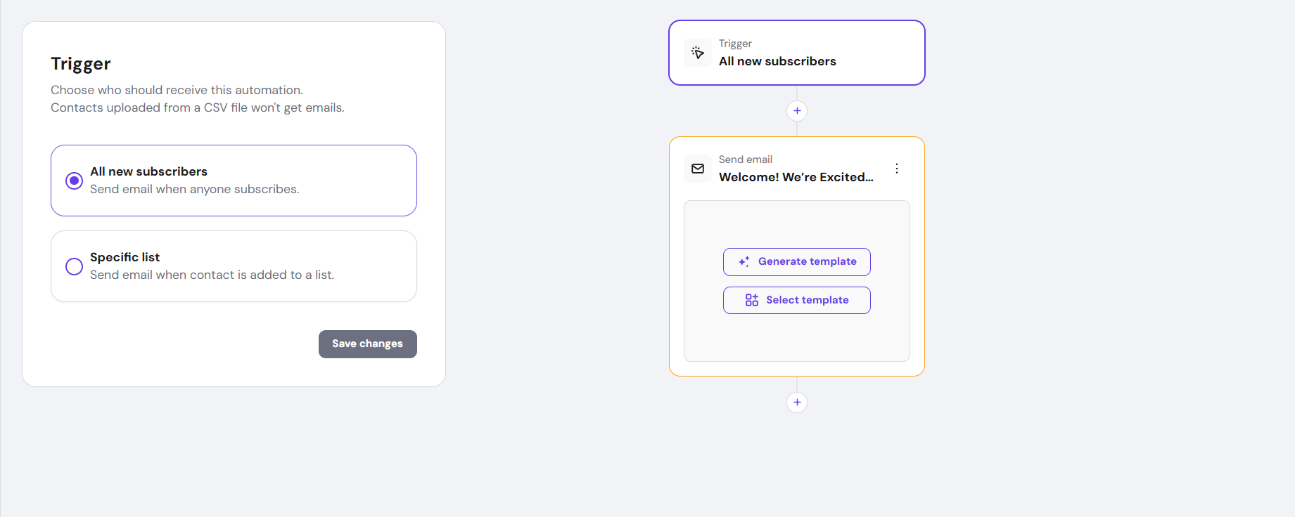 The Welcome Email Automation feature allows you to automatically send a pre-configured welcome email to every new subscriber. This helps you build trust and establish early engagement without the need for manual effort.