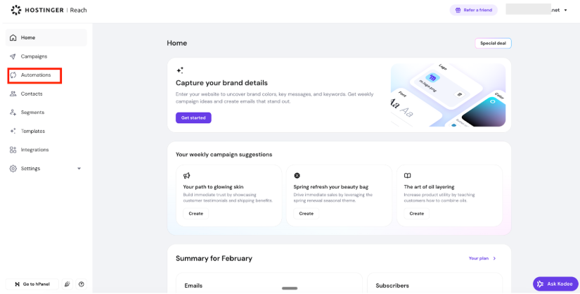 1. Go to your Hostinger Reach dashboard