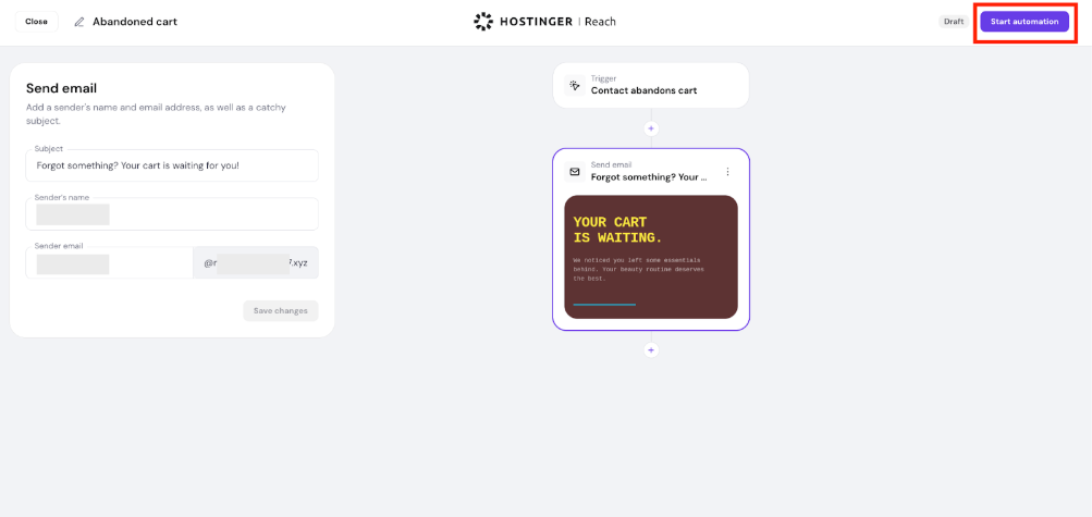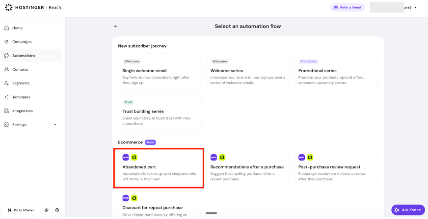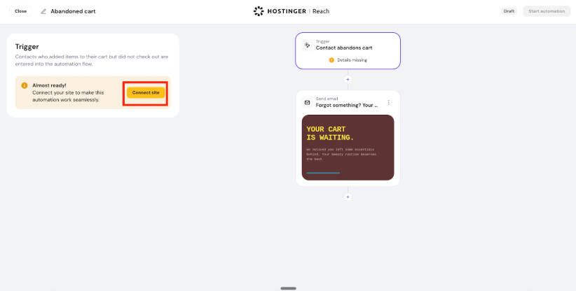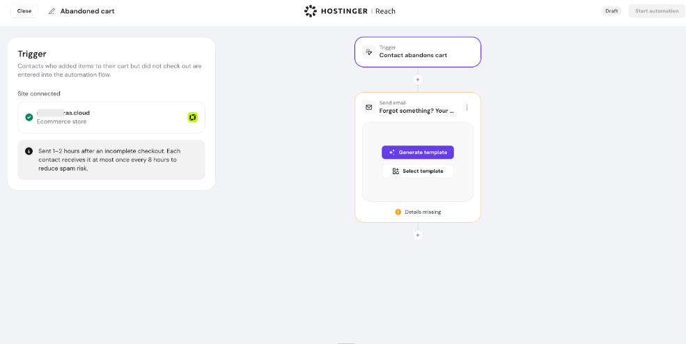 Hostinger Reach: How to set up abandoned cart email automation for Hostinger Website Builder stores