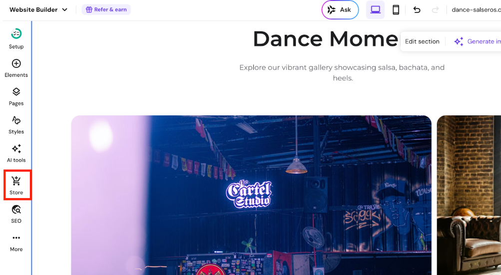 B. Your Website Builder site doesn’t have an active store