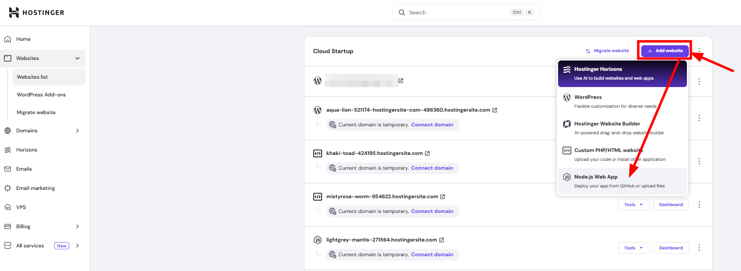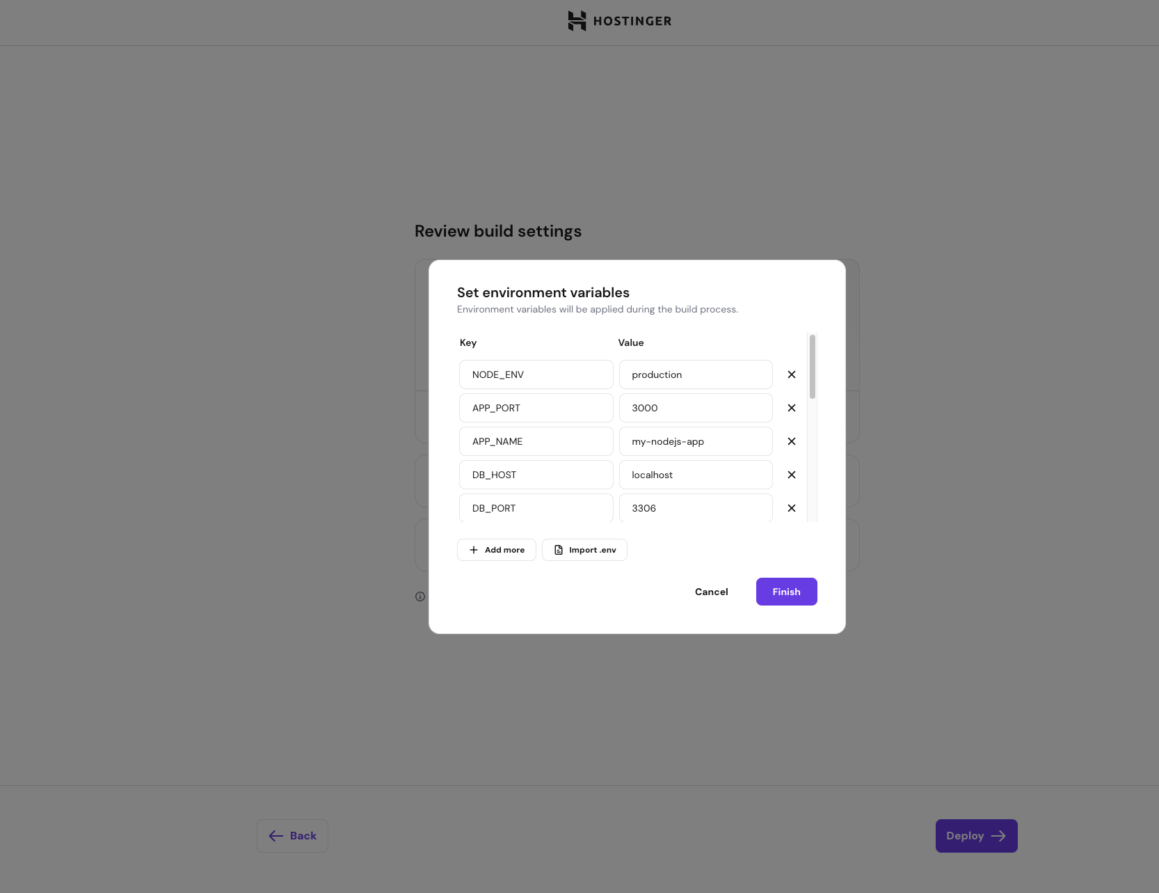 When deploying a Node.js application on Hostinger, you can configure environment variables as part of the deployment process. Environment variables are commonly used to store sensitive data and configuration values such as database credentials, API keys, and application settings.