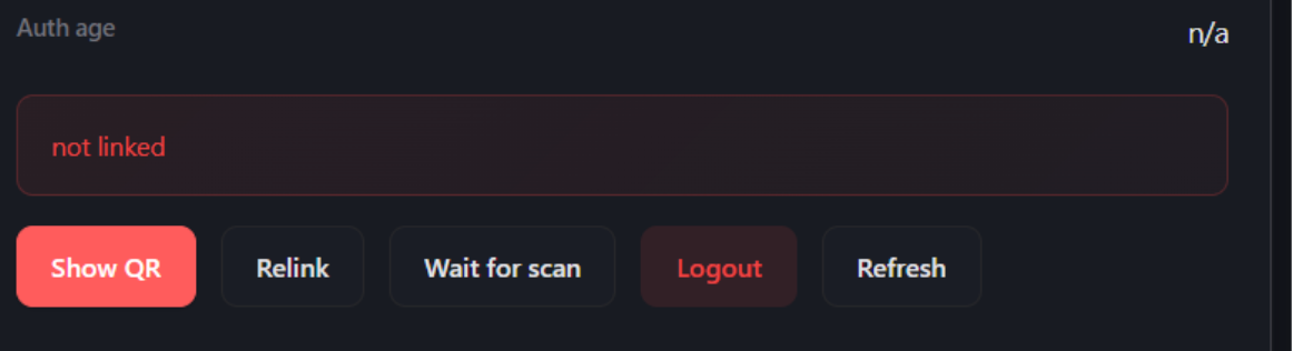 - Connected – Whether there is an active connection to WhatsApp servers.