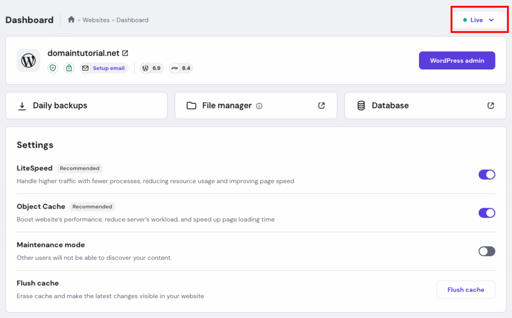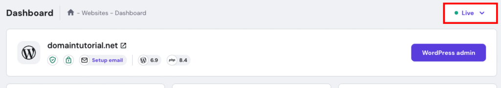 Open Website → Dashboard. On the Dashboard, click Live button on the right side.