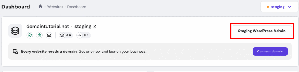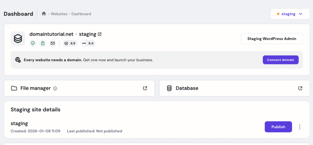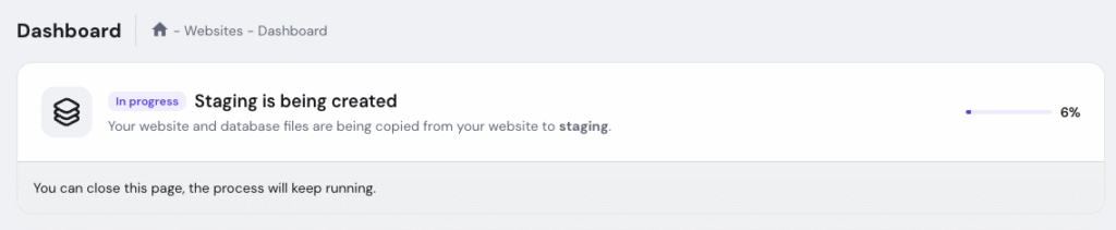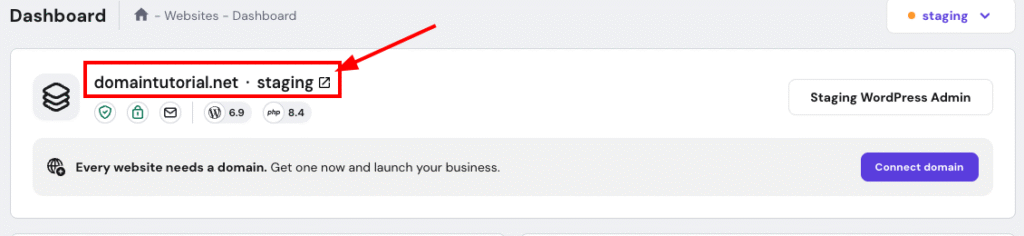 • Staging websites are created as temporary domain.
