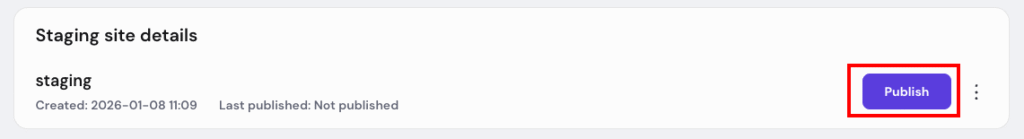 Once you have worked on the staging website and are ready to go live, you can push the changes by clicking on Publish.