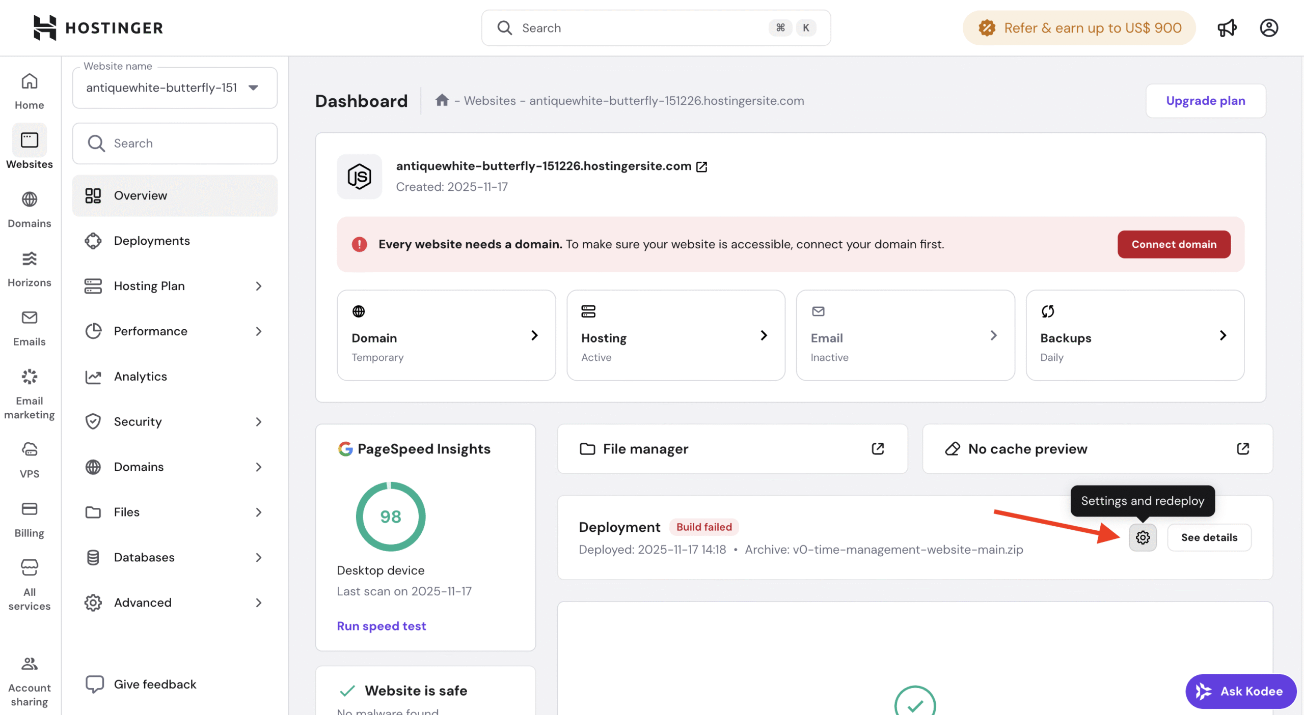 After deploying a Node.js application on Hostinger, you can edit existing environment variables or add new ones at any time. Changes to environment variables require a redeployment to take effect.