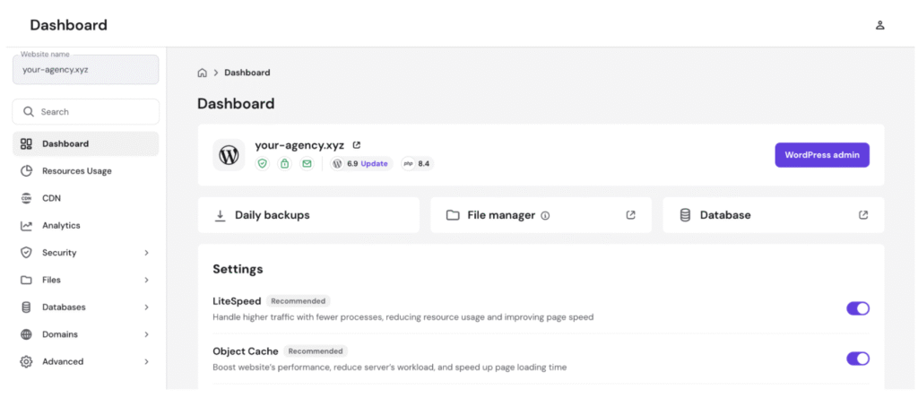 NOTE: The Unbranded Dashboard is a Beta feature available exclusively on the Agency Hosting plan. If you are not on this plan, you will not see this option in your hPanel.