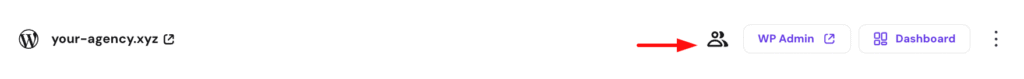 Step 1 – Log in to hPanel. Once logged in, navigate to the website you want to share with your client. In the website row, click the team member icon (the person with a plus sign) located in the top-right action bar of the website card.