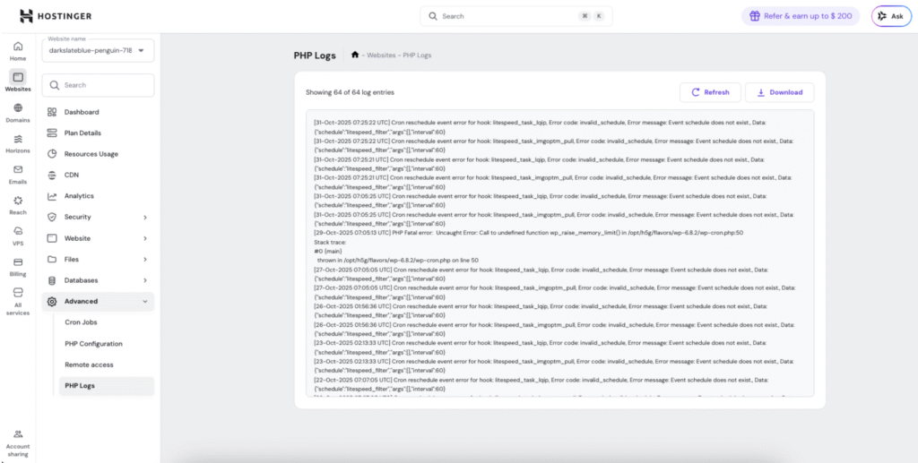 PHP logs record errors, warnings, and notices generated by PHP scripts on your website. These logs are essential for debugging issues, monitoring site health, and identifying problems before they impact your visitors.