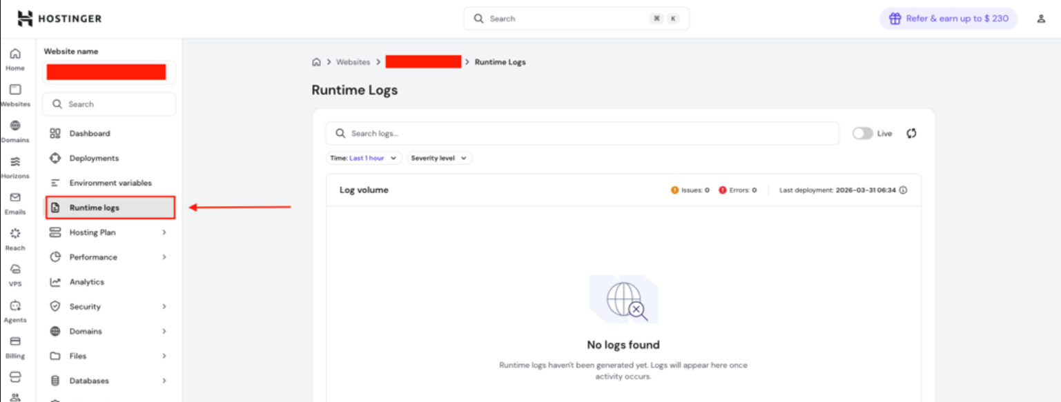 Note: If you see injecting env (0) from .env in your runtime logs, this is not an error. The (0) simply means zero variables were loaded from a .env file — either because the file doesn’t exist on the server, or it’s empty. This is expected, since .env files are typically not deployed.